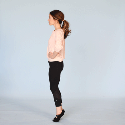 - Pause in this position for a few seconds and come back to the initial position by pushing on your heels