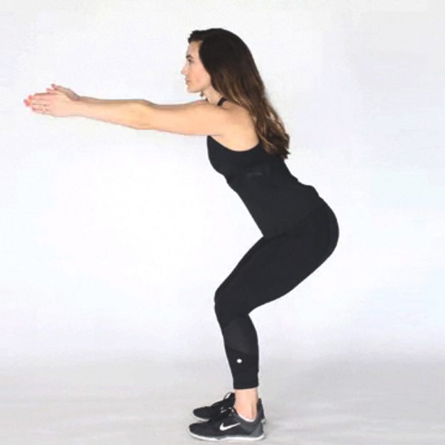 - Slowly, bend/squat for almost 10 inches (Halfway to a full squat)